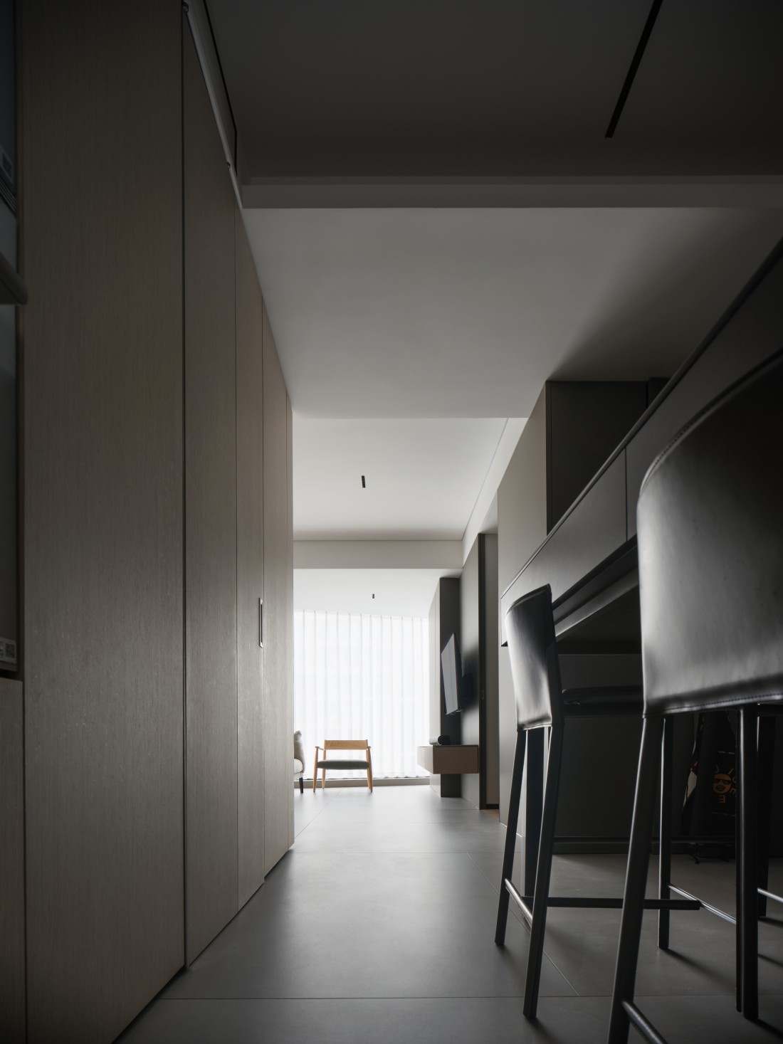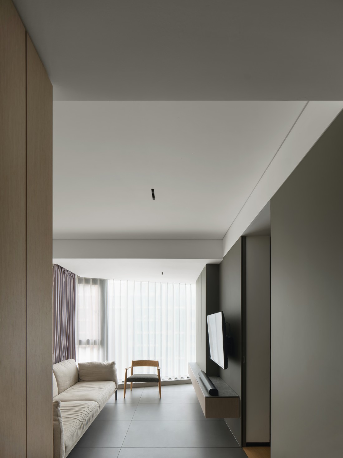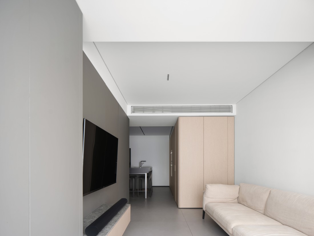 在平层空间里,打破了传统的布局,产生了新的可能,动与静,开敞与私密被清晰的划分。